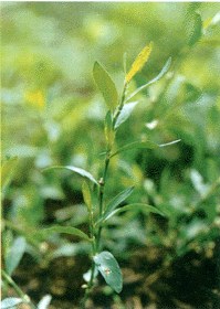植物形态 一年生草本,高10~40cm,常有白粉;茎丛生,匍匐或斜升,绿色,有沟纹,叶经生,叶片线形至披针形,长1~4cm,宽6~10cm,顶端钝或急尖,基部楔形,近无柄;托叶鞘膜质,下部褐色,上部白色透明,有明显脉纹。花1~5朵簇生叶腋,露出托叶鞘外,花梗短,基部有关节;花被5深裂,裂片椭圆形,暗绿色,边缘白色或淡红色;雄蕊8;花柱3裂。瘦果卵形,长2mm以上,表面有棱,褐色或黑色,有不明显的小点。花果期5~10月。