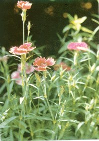 植物形态 多年生草本。茎丛生,高30~50cm,直立或基部匍匐,节膨大。叶线状披针形,长3~5cm,宽3~5mm,先端渐尖,基部狭窄成聚伞花序;小苞片4~6,广卵形,先端尾状渐尖,长约为萼筒的1/2;萼圆筒形,先端5裂;花瓣鲜红色、白色、粉红色,边缘有不整齐的浅锯齿,喉部有斑纹或疏生须毛。蒴果包于宿萼内。种子扁卵形,灰黑色,边缘有狭翅。花期5~9月,果期8~10月。