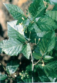 植物形态 一年生草本,高30~60cm。茎直立,上部多分枝,稀被白色柔毛。叶互生,卵形,长2.5~10cm,宽1.5~5.5cm全缘或具波状齿,先端尖锐,基部楔形或渐狭至柄,叶柄长达2cm。花序短蝎尾状或近伞状,侧生或腋外生,有花4~10朵,花序梗长1~2.5cm;花细小,柄长约1cm,下垂;花萼杯头,绿色,5浅裂;花冠白色,辐射状,5裂,裂片卵状三角形,约3cm;雄蕊5,花药顶端孔裂;子房上位,卵形,花柱中部以下有白色绒毛。浆果球形,直径约8mm,熟时黑色。种子多数,近卵形,压扁状。花果期9~10月。