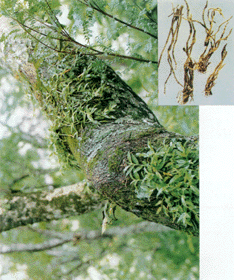 | | 中文名: | 石斛─环草石斛 | | 类 别: | 茎藤类 | | 英文名: | Loddiges Dendrobium Stem | | 别 名: | 美花石斛、小环草、 小黄草。 | | 来 源: | 为兰和产植物环草石斛Dendrobium loddigesii Rolfe的茎。 | | 采 制: | 同金钗石斛。 | | 性 味: | 茎细长圆柱形,偶有分枝,常弯曲盘绕成团或捆成把,长11~35cm,中部直径0.5~2mm,节间长0.5~2.5cm。表面金黄色,有光泽,具细纵状,常残留有棕色叶鞘,松抱于茎,易脱落。质柔韧而实,断面平坦,灰白色。鲜品茎绿色。气微,味微苦。 | | | 植物形态: | 茎圆柱形,高10~35cm,粗3~6mm。叶质肉质,矩圆状披针形,长2~5cm,宽0.6~1.7cm,顶端急尖。花单生于有叶或无叶茎上,稀2朵,粉红色,有香气;萼片长1.3~2cm,宽7~8mm;花瓣长圆形,长1.6~2.1cm,宽7~10mm,边缘啮蚀状;唇瓣近圆形,黄色,长2~2.2cm,先端圆形,内面被短毛,边缘具流苏。花期4~6月。 | | 生长地: | 生于林中树上和岩石上。分布于广西、云南、贵州、海南。 | | 化学成份: | 茎含生物碱、主含石斛宁(shihunine)等。 | | 功能主治: | 同金钗石斛。 | | 附注: | | | |