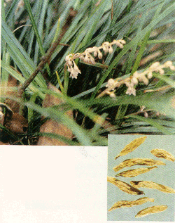 | 植物形态: | 多年生常绿草本。叶丛生,窄长线形,长15~40cm,宽1.5~4mm,先端急尖或渐尖,基部稍扩大并在边缘具膜质透明的叶鞘。花葶比叶短,长7~15cm;总状花序穗状,顶生,小苞片膜质,每苞片腋生1~3朵花;花梗略弯曲下垂,常于近中部以上有关节;花被片6,披针形,淡紫色或白色;雄蕊6,花丝极短;子房半下位,3室。果实浆果状,球形,熟后暗蓝色。花期5~8月,果期7~9月。 | | 生长地: | 生于山坡林下或溪旁。主产浙江、四川;现大量栽培。 | | 化学成份: | 含麦冬皂甙A、B、B’、C、C’、D、D’(ophiopogoninA,B,B’,C,C’、D,D’)、麦冬酮A、B(ophiopogononeA,B)、甲基麦冬黄酮A、B(methy-lophiopogononeA,B)、二氢麦冬黄酮A、B(ophiopogonanoneA,B)等。 | | 功能主治: | 养阴生津,润肺清火。用于肺燥干咳、津伤口渴、心烦失眠、内热消渴。 | | 附注: | | |