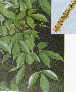 | 植物形态: | 木质藤本。枝及分枝常有下弯的皮刺,小枝被锈色短柔毛,并有白色皮孔。三出复叶互生,具柄;小叶无柄,倒卵形,椭圆形或倒卵状披针形,边缘细锯齿,齿间及叶片均有透明腺点。花单性,白色、青色或黄色;雄花常组成腋生伞房状圆锥花序;雌花常组成聚伞状圆锥花序;萼片、花瓣、雄蕊4~5,子房5室。核果近球形,熟时橙红色或朱红色,具深色腺点。花期10~12月,果期12月~翌年2月。 | | 生长地: | 生于丛林中。主产湖南、广西、陕西、四川、贵州。 | | 化学成份: | 根含白屈菜红碱(chelerythrine,toddaline)、二氢白屈菜红碱(dihydrochelerythrine,toddalinine)等。 | | 功能主治: | 止血,散瘀,止痛。用于吐血、鼻血、子官出血、风湿肿痛、肋间神经痛、跌打损伤、疮疖肿毒。 | | 附注: | | |
