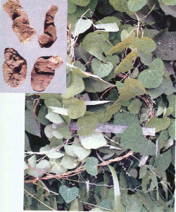 | 植物形态: | 多年生落叶缠绕藤本。茎纤细,有纵条纹。叶互生,宽三角状卵形,先端钝,具小突尖,基部截形或略心形,两面均被短柔毛,全缘,掌状脉5条;叶柄盾状着生。花小,单性,雌雄异株;雄花序为头状聚伞花序,排成总状,萼片4,花瓣4,雄蕊4,花丝连成柱状体,上部盘状,花药着生其上;雌花萼片、花瓣与雄花同,心皮1。核果球形,熟时红色。花期5~6月,果期7~9月。 |