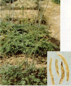 植物形态 多年生草本。茎直立,中空,具粉霜,上部分枝。基生叶为三出式2~3回羽状全裂,最终裂片披针形,叶柄长,基部呈鞘状;茎上部叶鳞片状或鞘状。复伞形花序无总苞;伞幅6~10;小总苞片钻形;花梗10~15;花白色。双悬果扁圆形至卵状长椭圆形。花期4~5月,果期6月。