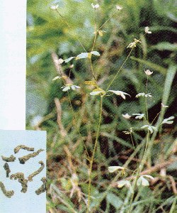 植物形态 多年生草本,高达40cm。茎纤细,疏生短柔毛。基生叶有长柄,为三出复叶,小叶广楔形,3深裂,裂片疏生粗齿,下面带紫色;茎生叶较小,夏末茎叶枯萎。花小,单生于叶腋或茎顶,白色微带淡红,萼片5,花瓣状;花瓣5,匙形,基部囊状;雄蕊8~14;心皮3~5。骨突果2~4。种子黑色。花期3~4月,立夏前果实成熟。