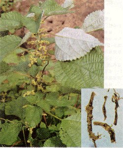 植物形态 多年生草本或亚灌木,高1~2m。根呈不规则圆柱形,略弯曲。茎直立,分枝,绿色,有短或长毛。叶互生,阔卵形或近圆形,长5~16cm,宽3.5~14cm,先端尾尖,基部宽楔形或圆形,边缘具粗齿,上面粗糙,下面密生白色绵毛。花单性同株,花序圆锥形;雄花序在雌花序下,雄花花被片4,雄花4,有退化雌蕊;雌花序簇生或球形,花被管状,4齿裂,子房1室,内含l胚珠。瘦果椭圆形,有毛,外被宿存花被,顶有宿存柱头,丝状。花期5~8月,果期8~10月。
