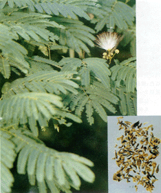 | 附注: | 头状花序皱缩成团。花细长而弯曲,长0.7~1cm ,淡黄棕色至淡黄褐色,具短梗;花萼筒状,先端有5小齿;花冠筒长约为萼筒的2倍,先端5裂,裂片披针形;雄蕊多数,花丝细长,黄棕色至黄褐色,下部合生,上部分离,伸出花冠筒外。气微香,味淡。树皮(合欢皮)含皂甙、鞣质,有解郁安神、活血消肿的功能;用于心神不安、忧郁失眠、肺痈疮肿、跌打伤痛,叶含鞣质、槲皮甙。 |