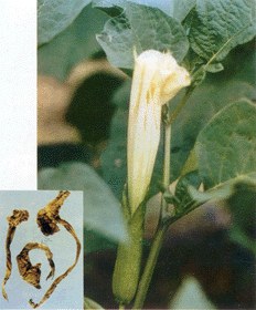 化学成分 含多种莨菪烷类生物碱,以东莨菪碱(scopolamine)含量较高,莨菪碱(hyoscyamine)少量。