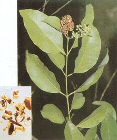植物形态 常绿寄生小灌木。树皮褐色,粗糙或纵裂。叶对生,椭圆形或卵状披针形,基部楔形,全缘,无毛;叶柄短。聚伞状圆锥花序腋生和顶生;花小,多数始为淡黄色,后变为深紫色;花被管钟形,先端4裂,裂片卵圆形,有4个蜜腺生于花被管中部;雄蕊4,与蜜腺互生。核果球形,成熟时黑色。种子圆形,光滑,有光泽。