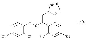 【分子式成分】化学名称为:1-[2-(2,4-二氯苯基)-2-[(2,4-二氯苯基)甲氧基]乙基]-1H-咪唑的硝酸盐。分子式:C18H14Cl4N2O·HNO3。分子量:479.15。