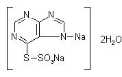 【分子式成分】化学名:6-巯基嘌呤钠-S-磺酸钠。分子式:C5H2N4Na2O3S2·2H2O。分子量:312.23。本品为白色鳞片状结晶。