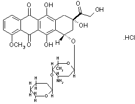 【分子式成分】化学名:(8S,10S)-[[3-氨基-2,3,6-三去氧-4-O-(2-四氢吡喃基)-α-L-阿拉伯吡喃糖基]氧]-7,8,9,10-四氢-6,8,11-三羟基-8-羟乙酰基-1-甲氧基-5,12-萘二酮盐酸盐。分子式:C32H37NO12·HCl。分子量:664.10。