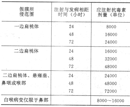 (1)出现症状者,及早注射抗毒素治疗。未经类毒素免疫或免疫史不清者,如系密切接触,可注抗毒素紧急预防。也应同时注类毒素,以获得永久免疫。