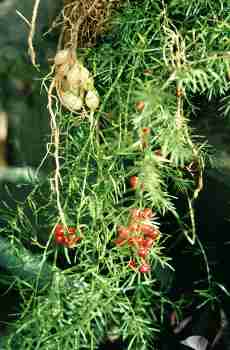 | 为百合科多年生攀援草本植物天冬的块根。主产贵州、四川、广西等地。秋、冬二季采挖,洗净,除去茎基和须根,置沸水中煮或蒸至透心,趁热除去外皮,洗净,干燥。切薄片,生用。 【性味归经】甘、苦,寒。归肺、肾经。 【功效】养阴润燥,清火,生津。 【应用】 1.用于阴虚肺热的燥咳或劳嗽咳血。能养阴清肺润燥。治燥热咳嗽,常配麦冬、沙参、川贝母等同用;治劳嗽咳血,或干咳痰粘,痰中带血,常配麦冬、川贝母、生地黄、阿胶等同用。 2.用于肾阴不足,阴虚火旺的潮热盗汗、遗精,内热消渴,肠燥便秘等症。能滋肾阴,清降虚火,生津润燥。治肾虚火旺,潮热遗精等,常配熟地黄、知母、黄柏等同用;治内热消渴,或热病伤津口渴,常配人参、生地黄等同用,如《温病条辨》三才汤;治热伤津液的肠燥便秘,可与生地黄、玄参等配伍。 【用法用量】煎服,10~15g。 《本经》 | |