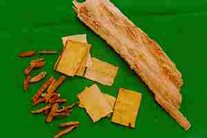 | 为芸香科落叶乔木植物黄檗和黄皮树除去栓皮的树皮。关黄柏主产于辽宁、吉林、河北等地;川黄柏主产于四川、贵州、湖北、云南等地。清明前后,剥取树皮,刮去粗皮,晒干压平,润透切片或切丝,生用或盐水炙、酒炙、炒炭用。 【性味归经】苦,寒。归肾、膀胱、大肠等。 【功效】清热燥湿,泻火解毒,退热除蒸。 【应用】 1.用于湿热带下,热淋脚气,泻痢黄疸。本品苦寒沉降,清热燥湿,长于清泻下焦湿热。用于湿热下注,带下黄浊秽臭,常与山药、芡实、车前子等同用,如易黄汤;用治膀胱湿絷,小便灼热、淋淳涩痛,常配车前子、滑石、木通等清热利尿通淋之品;治湿热下注,脚气痿辟,足膝肿痛,多与苍术、牛膝同用,如三妙丸;用于湿热泻痢,可配白头翁、黄连、秦皮等药,如白头翁汤;用治湿热黄疸尿赤,常与栀子同用,如栀子柏皮汤。 2.用于疮疡肿痛,湿疹湿疮。本品既能清热燥湿,又能泻火解毒。治疮疡肿毒内服外用均可,内服驳与黄连、柏子同用,外用以本品研细末,用猪胆汁或鸡蛋清调涂患处;治湿疹湿疮,阴痒阴肿,可与荆芥、苦参、蛇床子等同用,内服外洗均可,也可配青黛、滑石、甘草研细末撒敷。 3.用于阴虚发热,盗汗遗精。本品长于清相火,退虚热。常与知母相须为用,并配熟地、山萸肉、龟板等滋阴降火药同用,如知柏地黄丸。大补阴丸。 【用法用量】煎服,5~10g或入丸散。外用适量。清热燥湿解毒多生用;泻火除蒸退热多盐水炙用,止血多炒炭用。 【使用注意】本品苦寒,容易损伤胃气,故脾胃虚寒者忌用。 《本经》