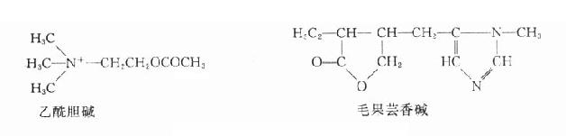 氨甲酰胆碱(carbamylcholine, carbachol)的化学结构和作用都与Ach相似,能直接激动M和N受体,也可能促进胆碱能神经末梢释放Ach而发挥间接作用。可用于手术后腹气胀和尿潴留。副作用较多,加以阿托品对它的解毒效果差,故目前主要局部滴眼用于治疗青光眼,引起缩瞳以降低眼内压。