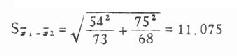 例7.6 某工业区卫生防疫站为掌握学龄儿童免疫球蛋白水平,对一批无结核及肾炎病史,一月内无急性感染,又未进行预防接种的学生作了血清IgM(mg/dl)测定,其中12岁男孩73人的X±S为125±54,12岁女孩68人的为153±75,试比较12岁男、女孩的IgM水平有无显著差别。