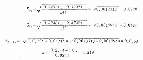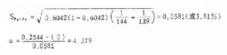 (3)求两样百分率的相差、两百分率相差的标准误Sp1—p2及u值。