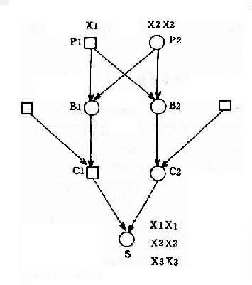2)舅表兄妹的近亲系数:如图6-5所示,P1之X1基因传至B2时中断,故不能形成X2X2。基因X2从P2经B1、C1传至S计为2步,从X2从P2经B2、C2传至S,也只计2步,故