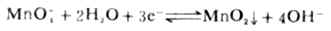 在微酸、中性或弱碱性溶液中,MnO-4被还原为棕色不溶物MnO2: