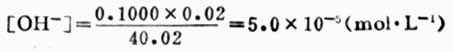 例如,当加入20.02ml NaOH溶液时, NaOH溶液过量0.02ml,溶液的总体积为40.02ml,则溶液的[OH-]为:
