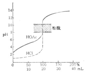 图7-2 用NaOH滴定HOAc的滴定曲线c