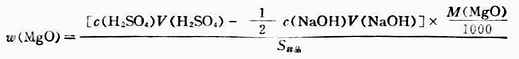 因为固体氧化镁难溶于水,所以在测定试样中氧化镁含量(质量分数)时,采用剩余量滴定法。即先称取一定量的待测样品溶于过量且已知准确体积的酸标准溶液中,待反应完全后,用标准碱溶液滴定剩余的酸,反应如下: