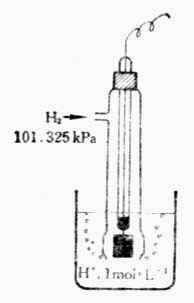 标准氢电极是氢离子浓度为1mol·L-1氢气的压力为101.325kPa的电极。国际上规定,298K 时,标准氢电极的电极电位为零。用符号