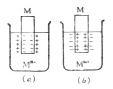 金属晶体是由金属原子、金属离子和自由电子组成的。当把金属插入其盐溶液中时,金属表面的离子与溶液中极性水分子相互吸引而发生水化作用。这种水化作用可使金属表面上部分金属离子进入溶液而把电子留在金属表面上,这是金属溶解过程。金属越活泼,溶液越稀,金属溶解的倾向越大。另一方面,溶液中的金属离子有可能碰撞金属表面,从金属表面上得到电子,还原为金属原子沉积在金属表面上。这个过程为金属离子的沉积。金属越不活泼,溶液浓度越大,金属离子沉积的倾向越大。当金属的溶解速度和金属离子的沉积速度相等时,达到了动态平衡。