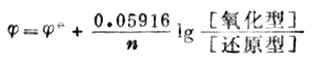 当温度为298K时,将各常数值代入式(6-2),并将自然对数转换成常用对数,能斯特方程式可改写为: