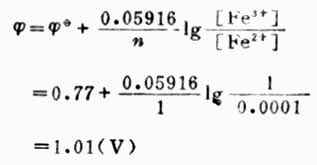 已知n=1,[Fe3+]=1mol.L-1,[Fe2+]=0.0001mol.L-1,