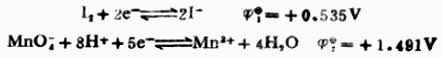 电池反应 2MnO-4+10I-+16H+ →2Mn2++5I2+8H2O