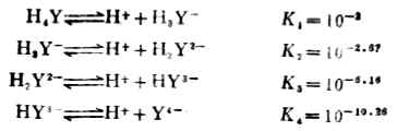 EDTA是四元酸,它在水中是分步离解的: