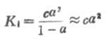 在浓度为c的弱酸中,[H+]=cα,即α=[H+]/c,又根据稀释定律,