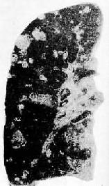 肺的切面上可见多数大小不等的图形癌结节,边界清楚