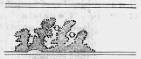 血小板粘集堆的形成是血栓形成的第一步,嗣后血栓形成的过程及血栓的组成、形态、大小都取决于血栓发生的部位和局部血流速度(图3-4)。
