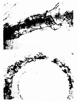 1.内皮为衬贴于血管腔单层扁平上皮。内皮细胞长轴多与血液流动方向一致,细胞核居中,核所在部位略隆起,细胞基底面附着于基板上。电镜观察,可见内皮细胞腔面有稀疏而大小不一的胞质突起,表面覆以厚约30~60nm的细胞衣,相邻细胞间有紧密连接和缝隙连接及10~20nm的间隙。内皮细胞核淡染,以常染色质为主,核仁大而明显。在胞质内有发达的高尔基复合体、粗面内质网和滑面内质网。内皮细胞超微结构的主要特点是胞质中有丰富的吞饮小泡,或称质膜小泡(plasmalemmal vesicle),直径60~70nm(图8-2)。这些小泡是由细胞游离面或基底面的细胞膜内凹形成,然后与细胞膜脱离,经细胞质移向对面,又与细胞膜融合,将小泡内所含物质放出,故小泡有向血管内外输物质的作用,细胞质内还可见成束的微丝和一种外包单位膜的杆状细胞器,长约3μm直径0.1~0.3μm,内有6~26条直径约15nm左右的平行细管,称Weibel-Palade小体(W-P小体)W-P小体是内皮细胞特有的细胞器,一般认为它是合成和储存与凝血有关的第Ⅷ因子相关抗原(factor Ⅷ related antigen, F Ⅷ)的结构(图8-2)。
