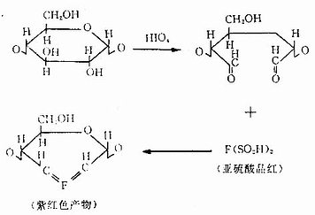 1.糖类显示多糖和蛋白多糖的常用方法是过碘酸-雪夫反应(periodic acid Schiff reaction,PAS反应)。基本原理是过碘酸的氧化作用先使糖分子的乙二醇基变为乙二醛基,后者继而与Schiff试剂(无色亚硫酸品红复合物)结合,形成紫红色反应产物(图1-3)。颜色反应的深浅取决于组织内多糖的乙二醇分子的多寡。