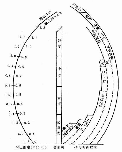 根据事故病例和实验资料,按初期症状和早期淋巴细胞绝对值的变化制订成早期分类诊断图,可作早期分类参考(图4-4)。