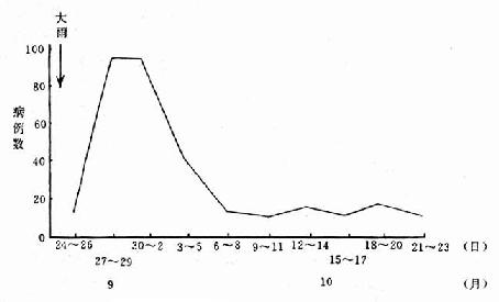 图2-5 乙型副伤寒水型爆发病曲线(3日计)