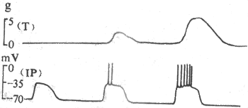 动作电位数目越多,收缩的幅度也越大T:张力 IP:细胞内电位