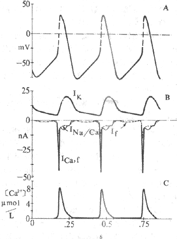 这种4期内向电流,通常称为起搏电流,其主要离子成分为Na+ ,但也有K+参与。由于使它充分激活的膜电位为-100mV,因而认为,构成起搏内向电流的是一种被膜的超极化激活的非特异性内向(主要是是Na+)离子流,标志符号为If。If的通道允许Na+通过,但不同于快Na+通道,两者激活的电压水平不同;If可被铯(Cs)所阻断,而河豚毒却不能阻断它。目前,关于If及其通道的研究资料尚有若干不能充分予以解释的疑点,对If的进一步研究正受到心肌电生理学者们的高度关注。