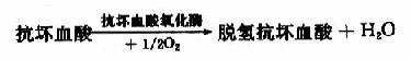 氧化酶直接作用于底物,以氧作为受氢体或受电子体,生成产物是水。氧化酶均为结合蛋白质,辅基常含有Cu2+,如细胞色素氧化酶、酚氧化酶、抗坏血酸氧化酶等。抗坏血酸氧化酶可催化下述反应: