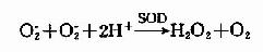 超氧离子在超氧化物歧化酶(superoxide dismutase,SOD)催化下生成H2O2与O2: