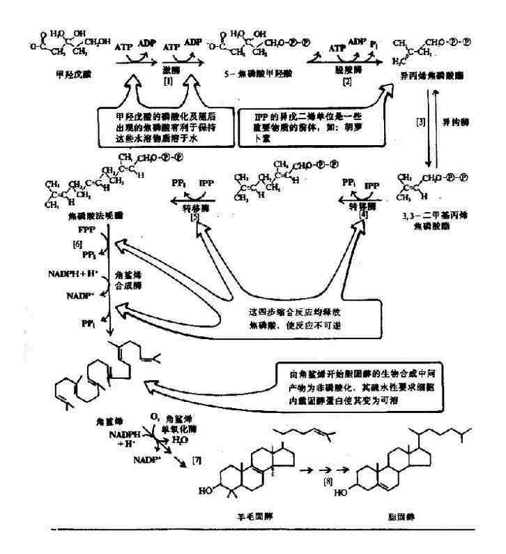 胆固醇合成过程比较复杂,有近30步反应,整个过程可根据为3个阶段。