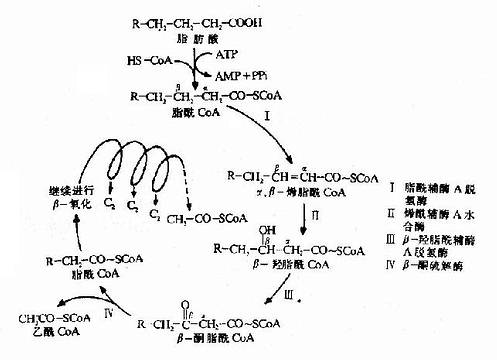 脂肪酸β-氧化的整个过程可用下图(图5-11)表示: