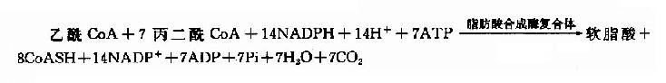 CH3(CH2)15COSCoA+8NAD++*CoASH+8H2O——→9CH3COSCoA+8FADH2+8NADH+8H+