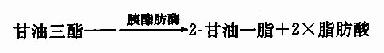 食物中的脂肪乳化后,被胰脂肪酶催化,水解甘油三酯的1和3位上的脂肪酸,生成2-甘油一酯和脂肪酸。此反应需要辅脂酶协助,将脂肪酶吸附在水界面上,有利于胰脂酶发挥作用。