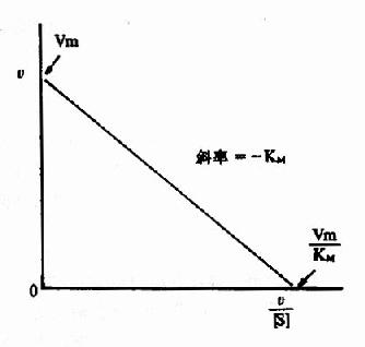 以V为纵坐标对V/[S]横坐标作图,所得直线,其纵轴的截距为Vmax,斜率为Km(图2-11)。