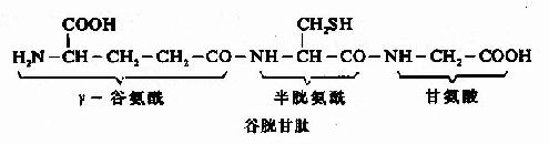 例如谷胱甘肽是由谷氨酸、半胱氨酸和甘氨酸三个氨基酸所组成的三肽,全名是γ-谷氨酰半胱氨酰甘氨酸,简称谷胱甘肽(glutachione,简写GSH)。其中N末端的谷氨酸是通过γ-羧基与半胱氨酸的氨基相连,这是一个例外。